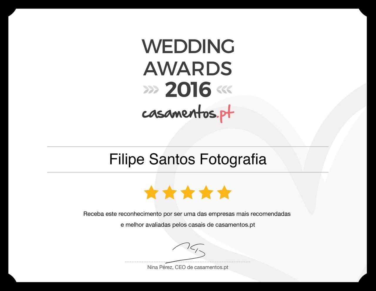 - Distinção nos Wedding Awards 2016 pelo portal casamentos.pt.