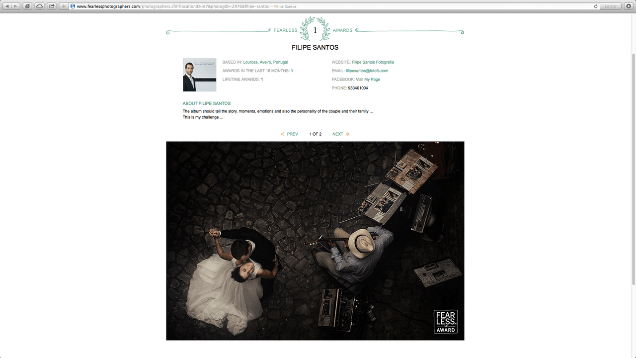 - Reconhecimento pela Fearless Photographers.